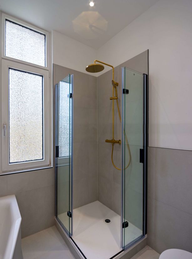- Stilvolle Armaturen und zeitloses Fliesendesign schaffen eine elegante Wohlfühlatmosphäre
